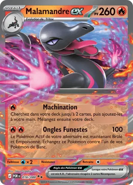 Carte Pokémon Malamandre ex 016/088 - ME03 Equilibre ParfaitMe03 - Equilibre Parfait